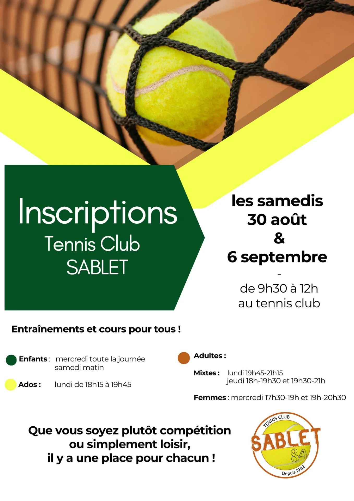 Plus d'informations sur notre page Facebook ou par mail à tennisclub.sablet@gmail.com